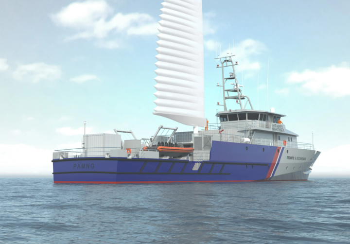 Команда морских архитекторов и инженеров из бюро MAURIC завершила детальную проработку компоновки судна, включая цикл оптимизации для наилучшего расположения парусов. На этом этапе также была финализирована разработка активных и пассивных систем стабилизации. Для этого были проведены расчеты мореходных качеств с целью оптимизации цистерны успокоения качки со свободной поверхностью и активных плавниковых стабилизаторов.